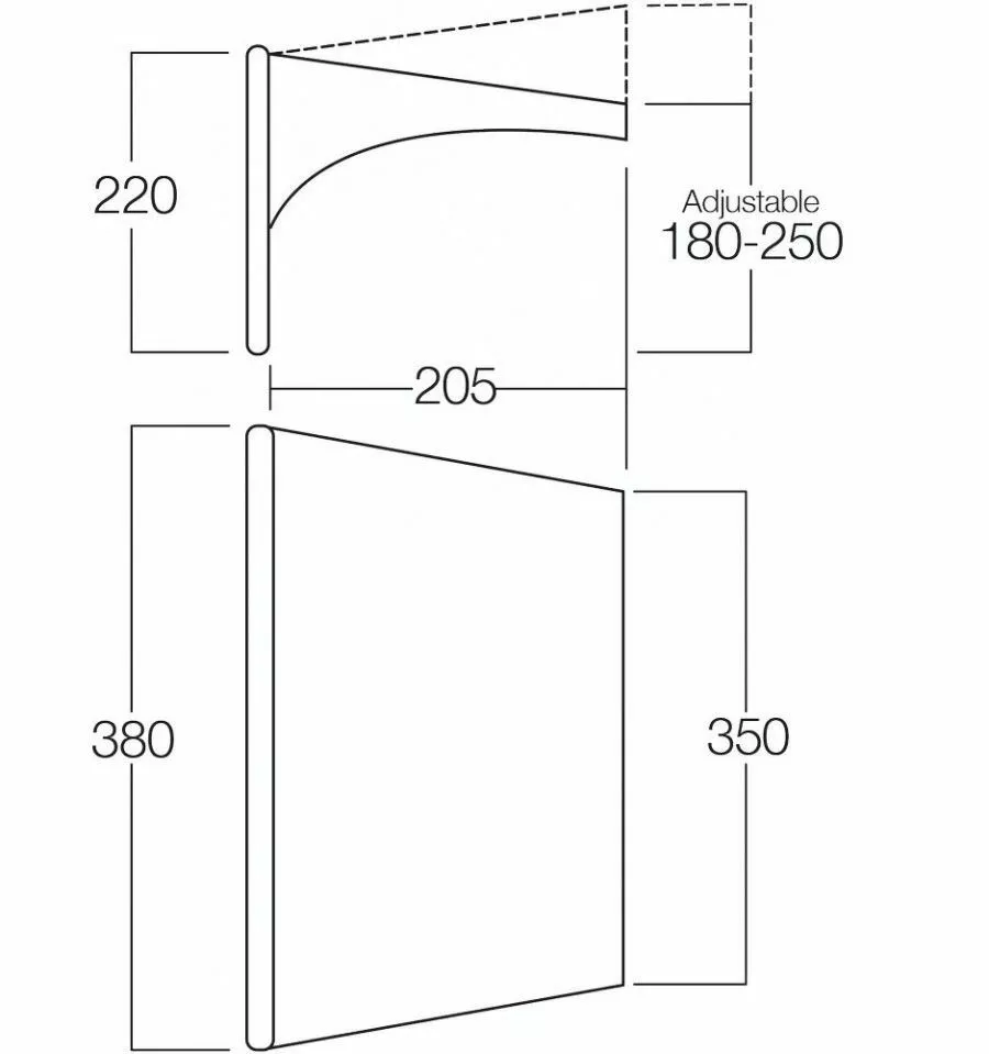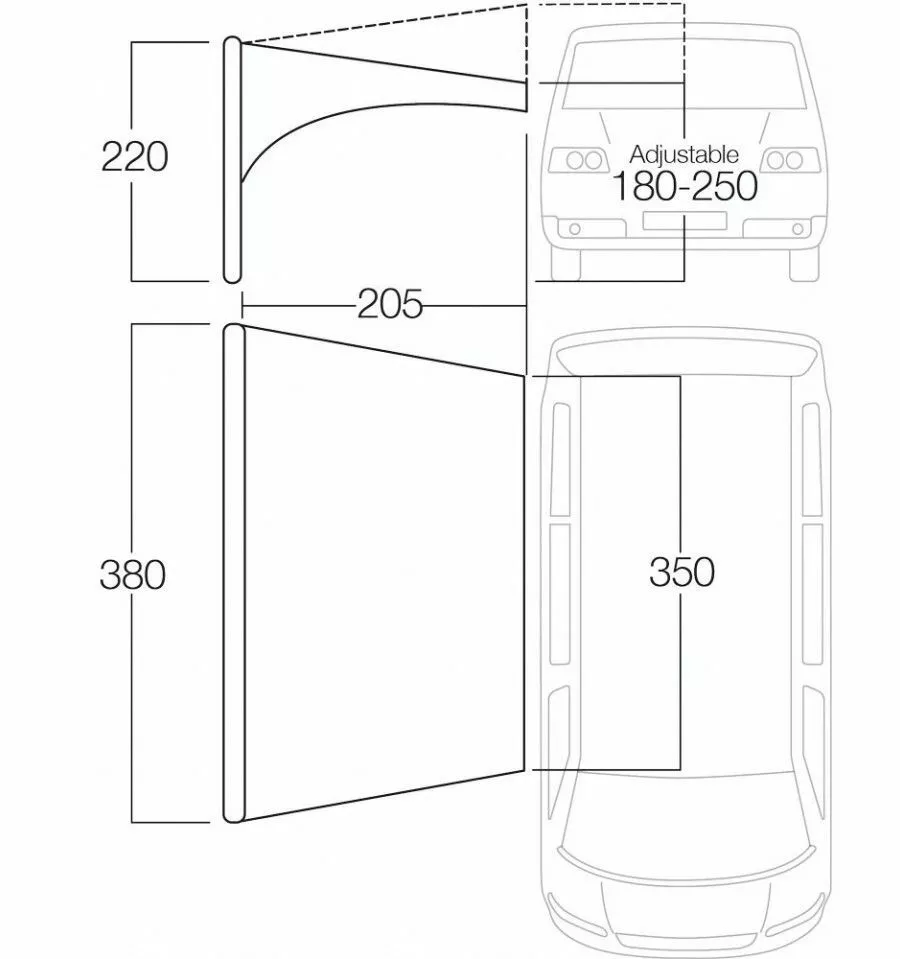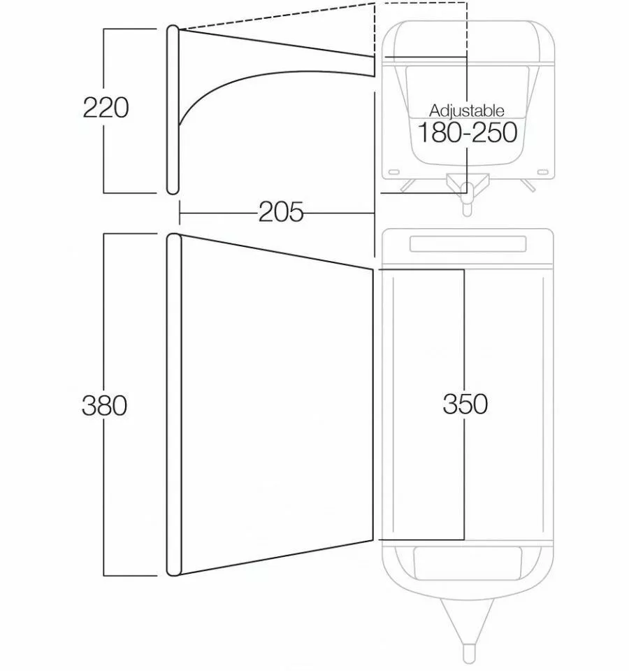 The Vango Airbeam Sun Canopy, with a width of 350cm, fits onto camper vans, motorhomes and caravans. The sun canopy is a fixed canopy, meaning it requires the vehicle to stand. Perfect for adding an auxiliary living space to your vehicle, and shelter from the sunshine or the rain, with optional sun walls to cover the sides of the Sun Canopy. Fits into the 6mm groove on the caravan, or any fixing strip on a caravan or motorhome.