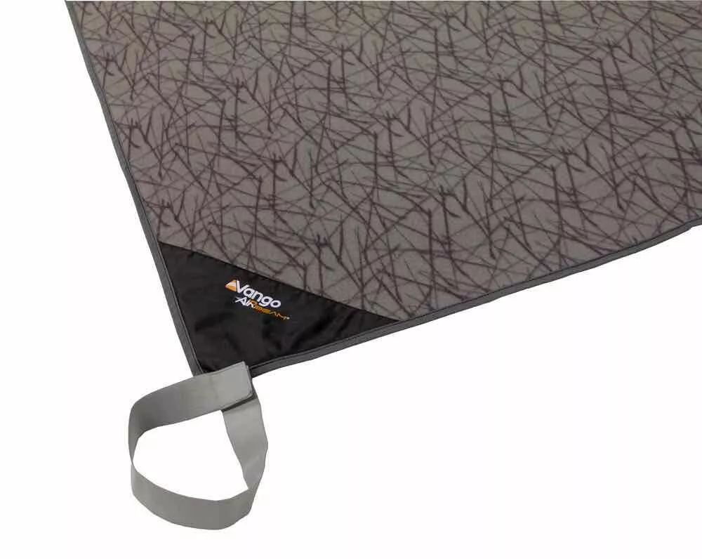 Perfect for early or late season campers, the Vango CP130 is a fitted carpet for the Vango Joro Air 450 Eco Dura, designed to alleviate the feel of the cold ground of an evening, when the temperatures drop down. It is fitted, and has straps to go around each Airbeam column to hold it in place. Further to this, it has a soft-feel topper, and a PVC back, for helping insulate the tent from the ground.