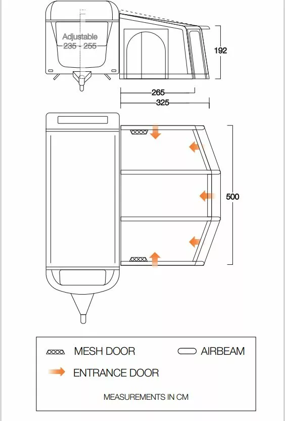 A fantastic caravan awning for touring, the Vango Tuscany 500 is very versatile, offering great flexibility over shorter-term camping trips during the Spring to Summer time. With the latest Airbeam technology embedded, the Single-Point inflation system allows it to be pitched from one central location. Further to this, it has the Superbeams, with a 13cm diameter, making them stronger, and able to cope with the weight and quality of the 300-Denier fabric.