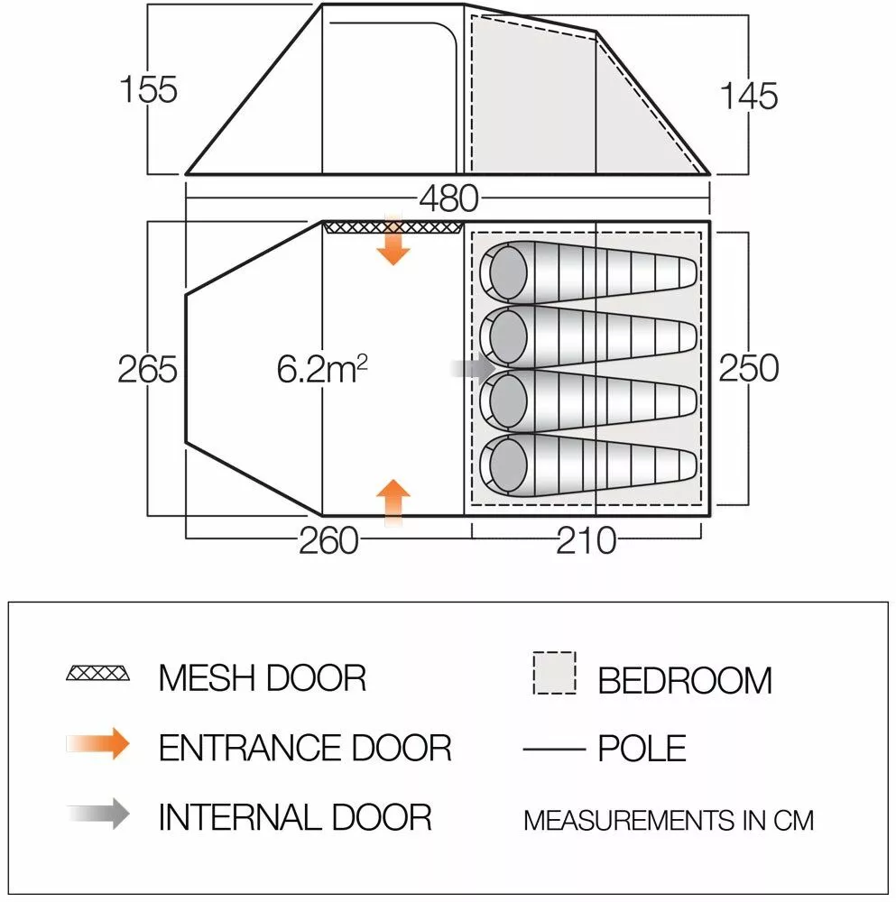 The tent has a large living space and an integrated four-berth inner bedroom compartment, which is made using the Nightfall bedrooms, to give a darker sleeping inner, for a longer night’s sleep.