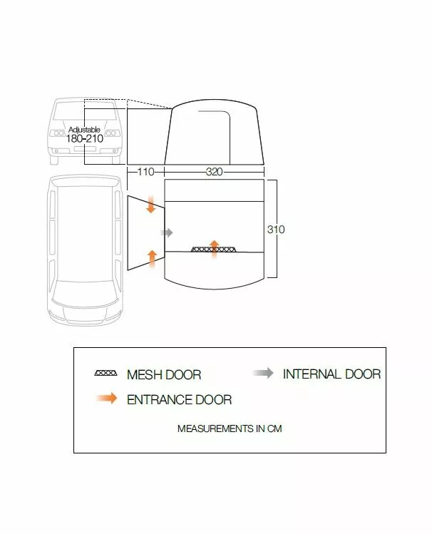 Side-Ways Fit: The Cove II Low Poled is sideways fitting, facing the front of the vehicle once pitches, this helps to maximise the living space, and usually provides a better view of the surroundings.