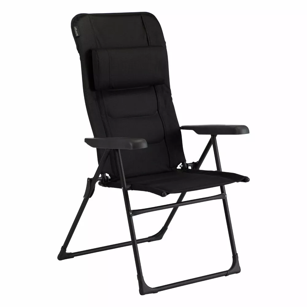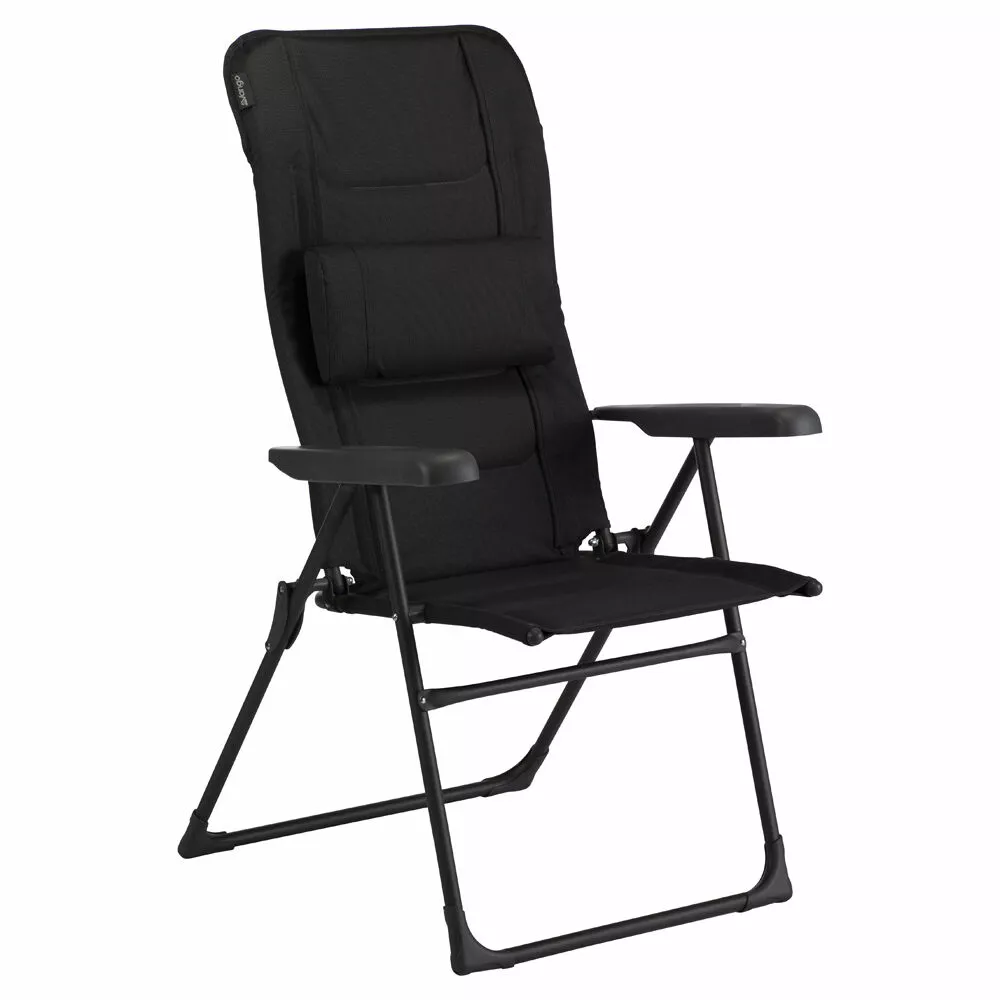 Updated for 2020, the Vango Hampton DLX camp chair has seven reclining options, and a wider and taller frame, making it ideal for the larger person. The Hampton DLX is an ergonomic chair, with a hi-back design, a padded seat and back and a cushioned head rest. The update is to the fabric, which is now the NEW Duoweave fabric, so is more resilient, but softer feeling than the previous fabric.