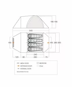 - Linked-In Groundsheet – Easy to clean groundsheet that can be attached or detached from the living area. Simply roll under the bedroom area when not required.